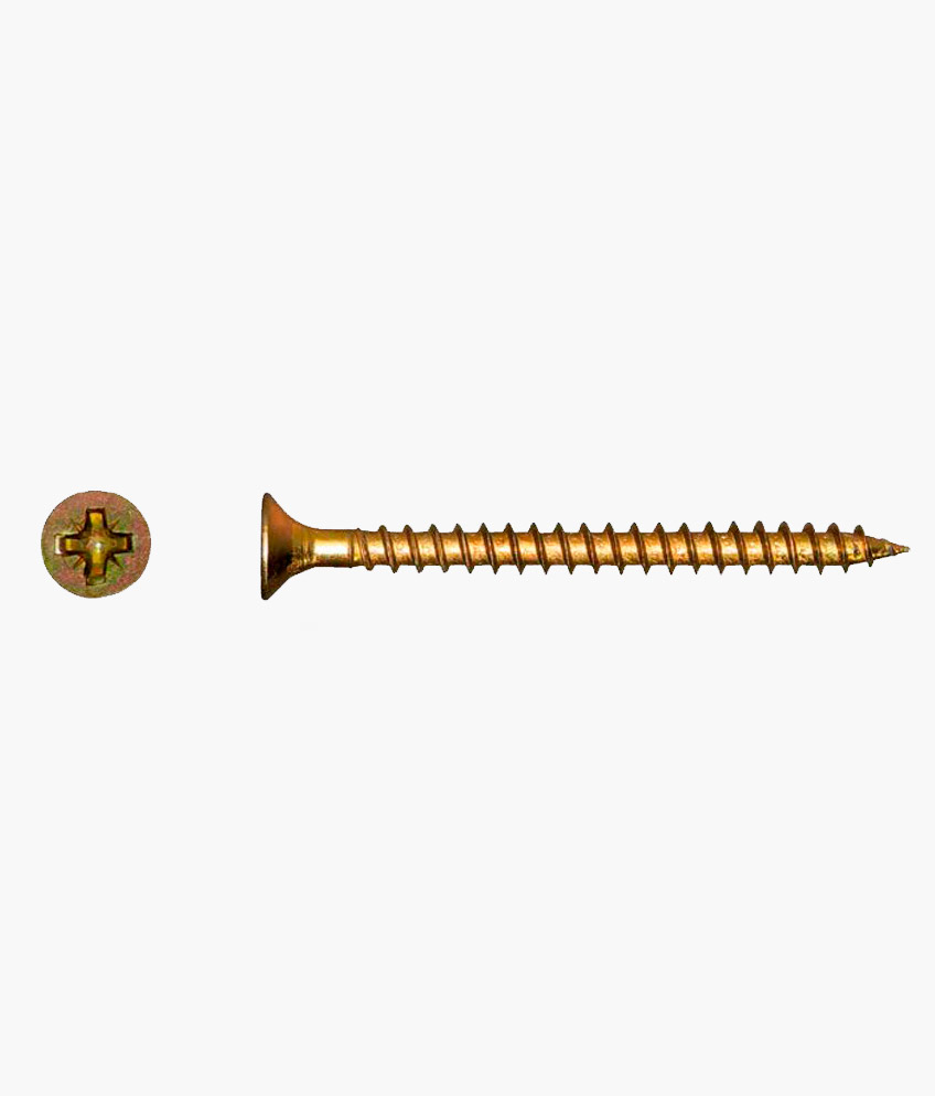 El tornillo Shipboard  es un sujetador especializado diseñado para aplicaciones que requieren un agarre firme y una alta resistencia a la extracción, comúnmente utilizado en la industria naval y en estructuras de madera pesada. Su fabricación garantiza una punta y rosca optimizadas para penetrar materiales densos sin causar grietas innecesarias. Para asegurar su protección en ambientes húmedos o salinos, cuenta con un acabado en zincado amarillo (bicromatizado), el cual ofrece una capa de pasivado superior al zincado blanco convencional, otorgándole una mayor durabilidad frente a la oxidación química y ambiental.